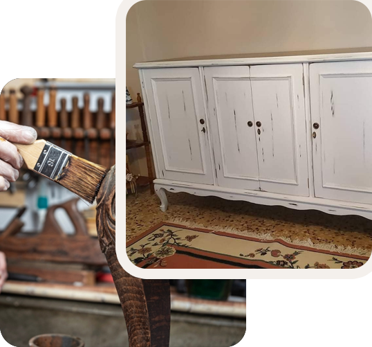 Παράλληλα, ειδικευόμαστε στις αναπαλαιώσεις επίπλων, δίνοντας νέα ζωή σε παλιά ή φθαρμένα έπιπλα, διατηρώντας τον χαρακτήρα και την αξία τους.